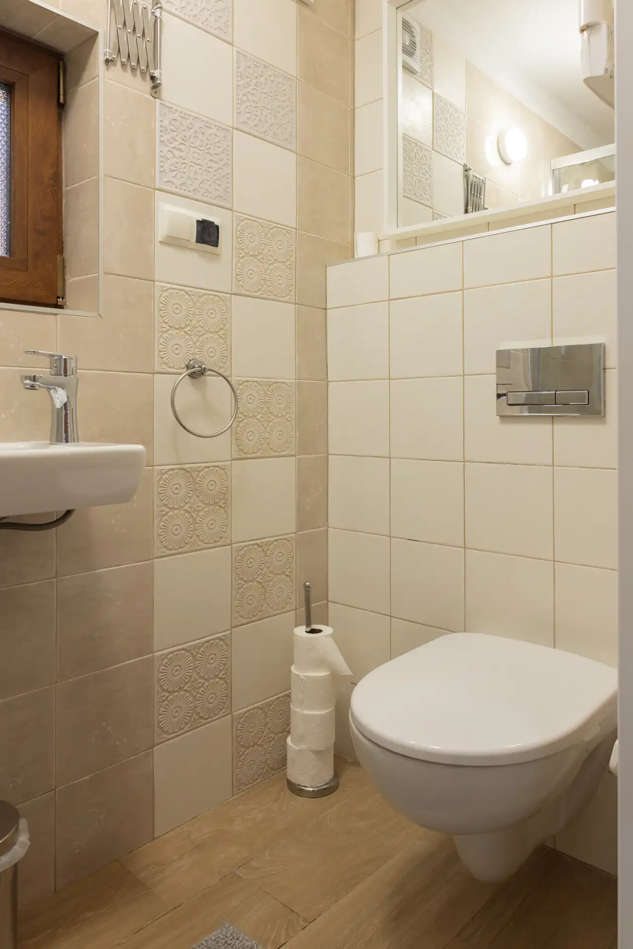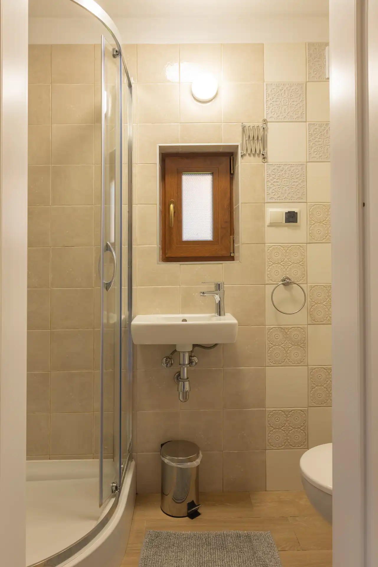 Ponadto znajdziesz tu lodówkę, zmywarkę, płytę indukcyjną, sztućce i pełną zastawę stołową. W domku jest również w pełni wyposażona i funkcjonalna łazienka z kabiną prysznicową, umywalką i toaletą.