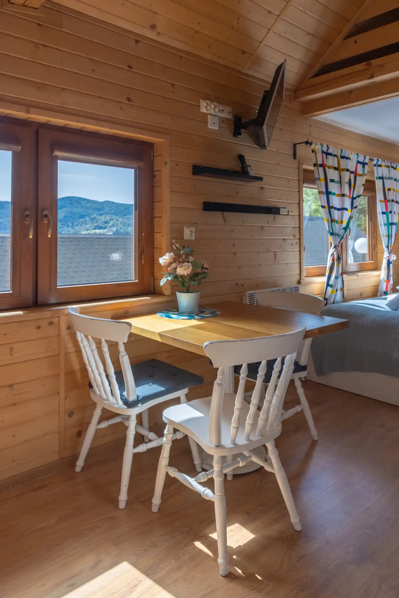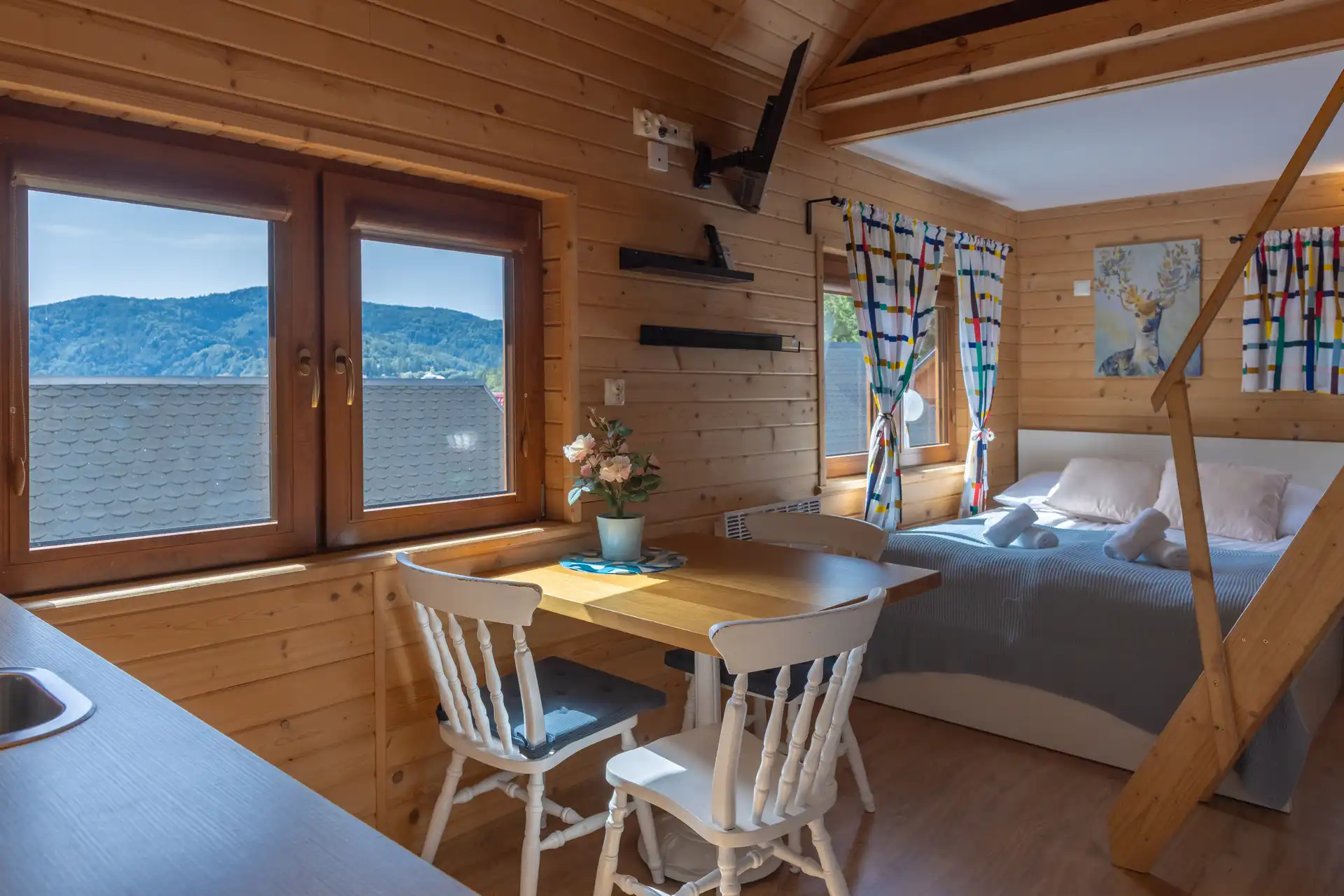 Pięknie położony, całoroczny, rodzinny, drewniany domek, który spełni oczekiwania gości poszukujących spokojnego noclegu w rozsądnych cenach.